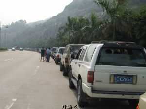 越野e族的車友們排成長龍出發(fā)了