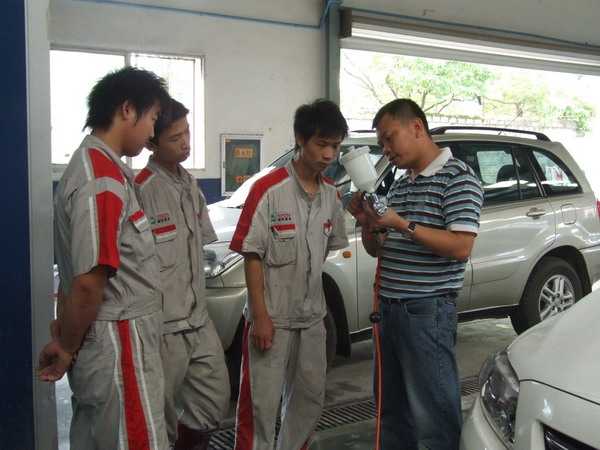 會后龍神高級技師曾慶渡到南昌富源豐田現(xiàn)場實操無塵干磨系統(tǒng)