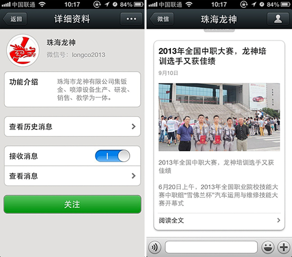 珠海龍神官方微信敬請關注! 珠海市龍神有限公司公共微信號已申請成功,請大家多多關注! 掃描二維碼,也可直接搜索公眾微信號“珠海龍神” 我們將不定期發(fā)布公司最新資訊。 您也可以發(fā)消息和我們進行互動。 查看歷史消息收看您錯過的動態(tài)新聞,讓您第一手掌握最新動態(tài)。 2013-09-18 16670